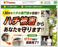 素人では駆除をすることが難しいハチやハチの巣などの駆除に特化しており、他にもシロアリなどの害虫や害獣の駆除も受け付けています。